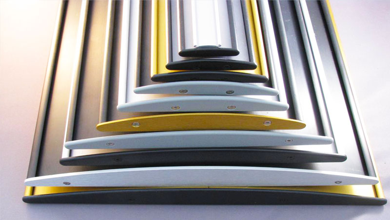 El sistema cuenta con 26 tamaños que van desde 30mm a 1200 mm de ancho, esto se consigue utilizando los canales para tornillos que existen dentro de los perfiles. Creando tapas personalizadas podemos crear cualquier ancho hasta 1200/ 48" Los canales en los lados de las extrusiones están diseñados para agarrar varios calibres de una gran variedad de materiales frecuentemente usados como sustratos para rótulos.